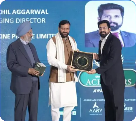 On September 29, 2021, Nikhil Aggarwal was honored by Haryana Chief Minister Shri Manohar Lal Khattar for his entrepreneurial excellence and impactful contributions to the pharmaceutical industry. This recognition highlighted his forward-looking leadership, ethical business practices, and commitment to quality-driven growth.