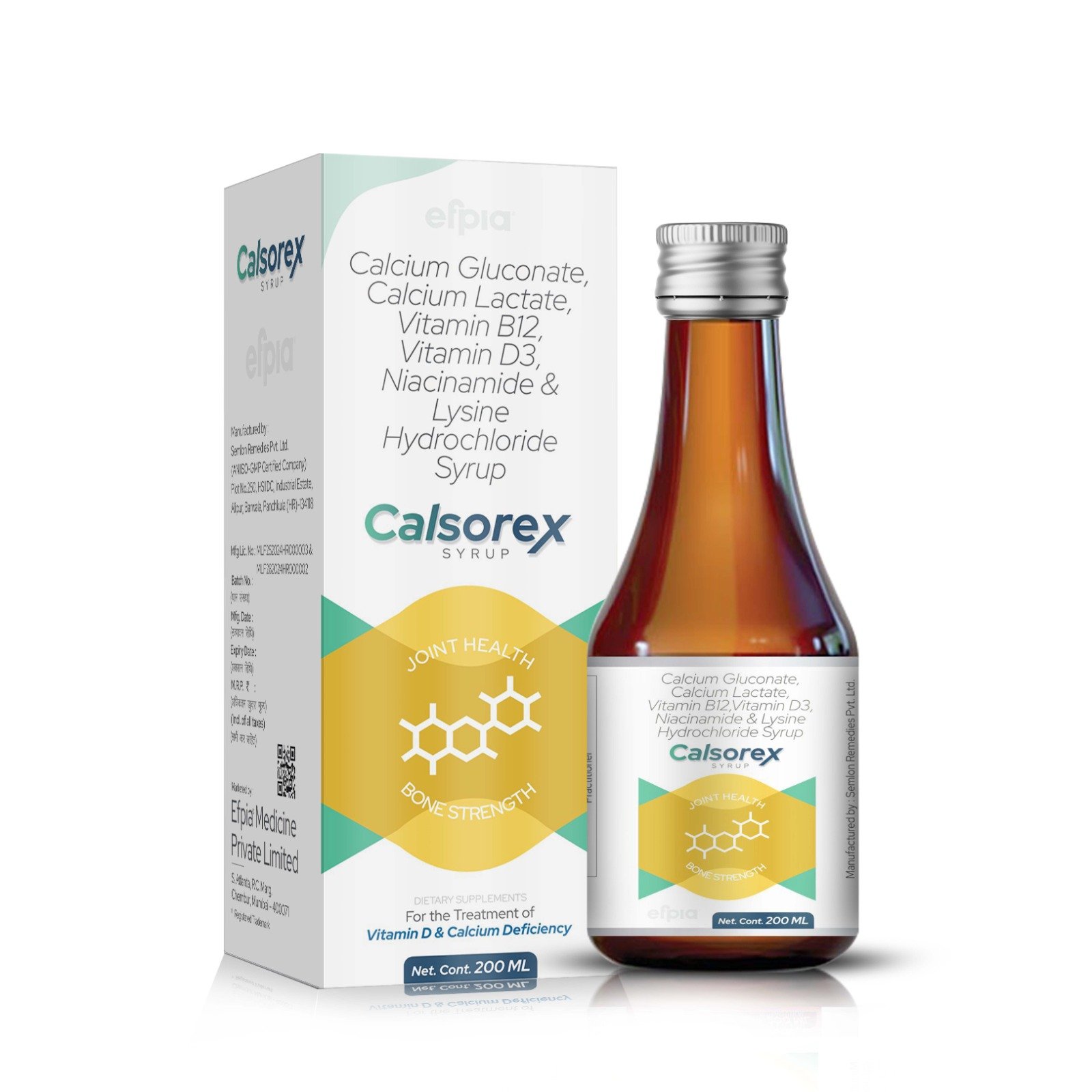 Calcium Gluconate, Calcium Lactate, Vitamin B12, Vitamin D3, Niacinamide & Lysine Hydrochloride Syrup – Calsorex Syrup
