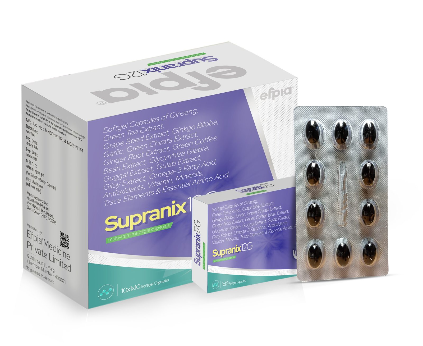 Omega-3 Fatty Acid + Green Tea Extract + Ginkgo Biloba Extract + Ginseng + Grape Seed Extract + Antioxidant + Multivitamins + Multiminerals Soft Gel Capsules -Supranix 12G Softgel Capsules