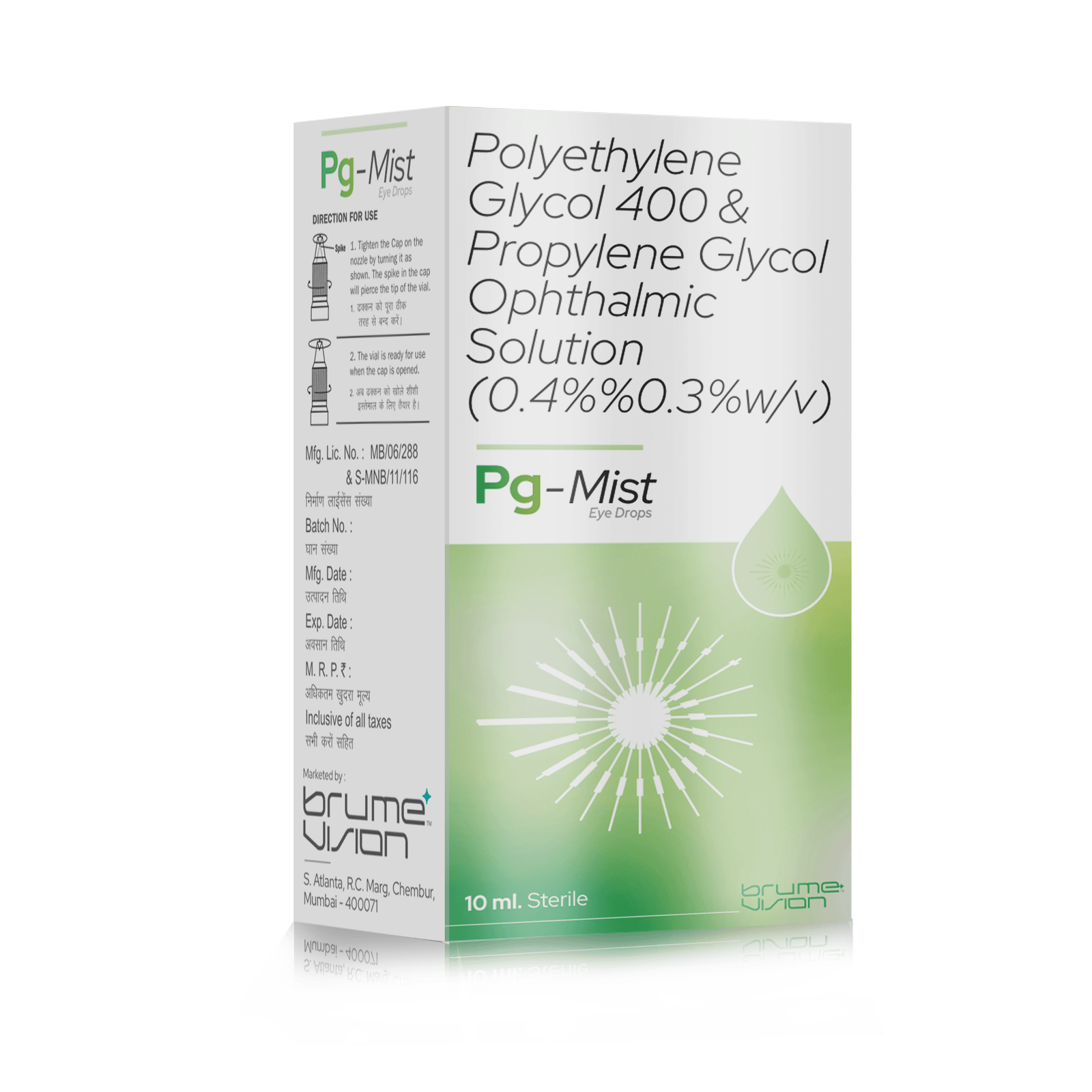 PG-MIST Eye Drops – Polyethylene glycol 400 and propylene glycol eye drops combined Polyethylene Glycol and Propylene Glycol a combination of lubricants used to manage dry and irritated eyes. Polyethylene Glycol is a highly viscous agent that maintains moisture in the eye and provides long-lasting lubrication to the eye. Propylene Glycol is a humectant that also helps to retain moisture in the eyes; and treats dry eyes without causing irritation.